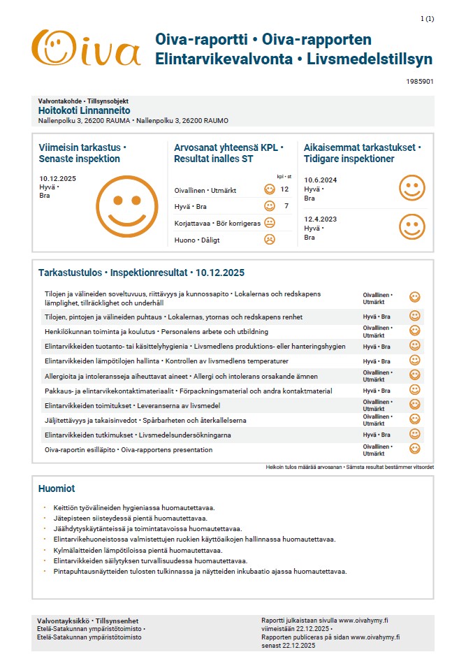Hoitokoti Linnanneito Oy on Raumalla toimiva yksityinen hoitokoti, joka tarjoaa asukkailleen ympärivuorokautista, kodinomaista ja turvallista asumispalvelua sekä hoitoa ja huolenpitoa.